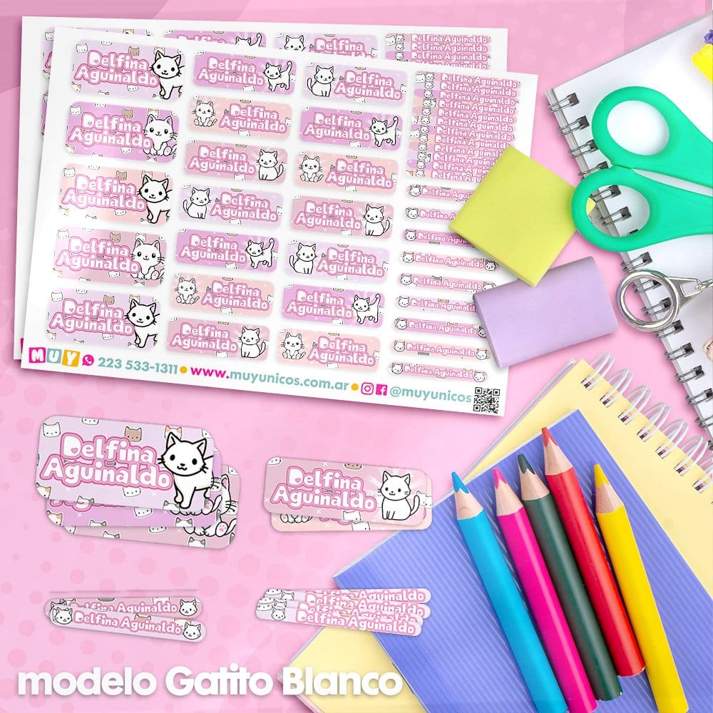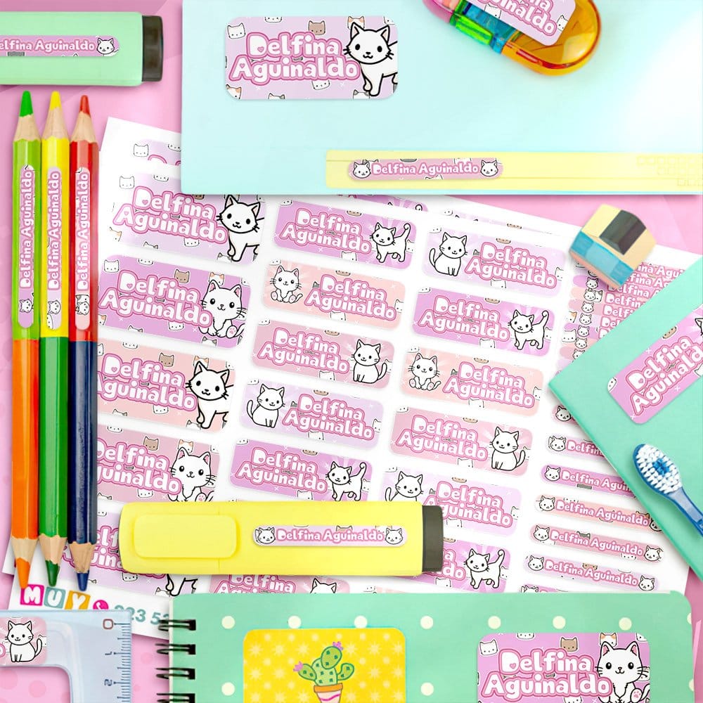 Etiquetas Escolares para Imprimir | Gatito Blanco (Archivo Digital PDF)