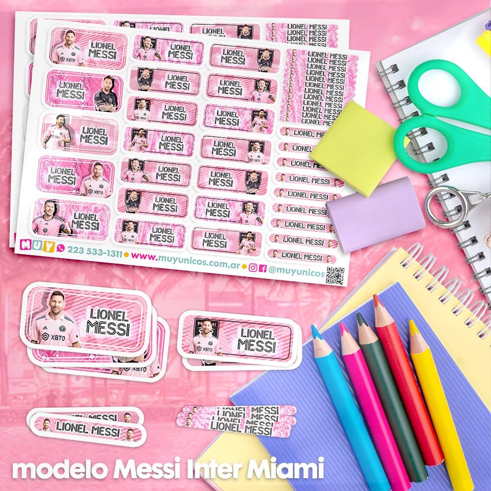 Etiquetas Escolares para Imprimir | Messi Inter Miami (Archivo Digital PDF)