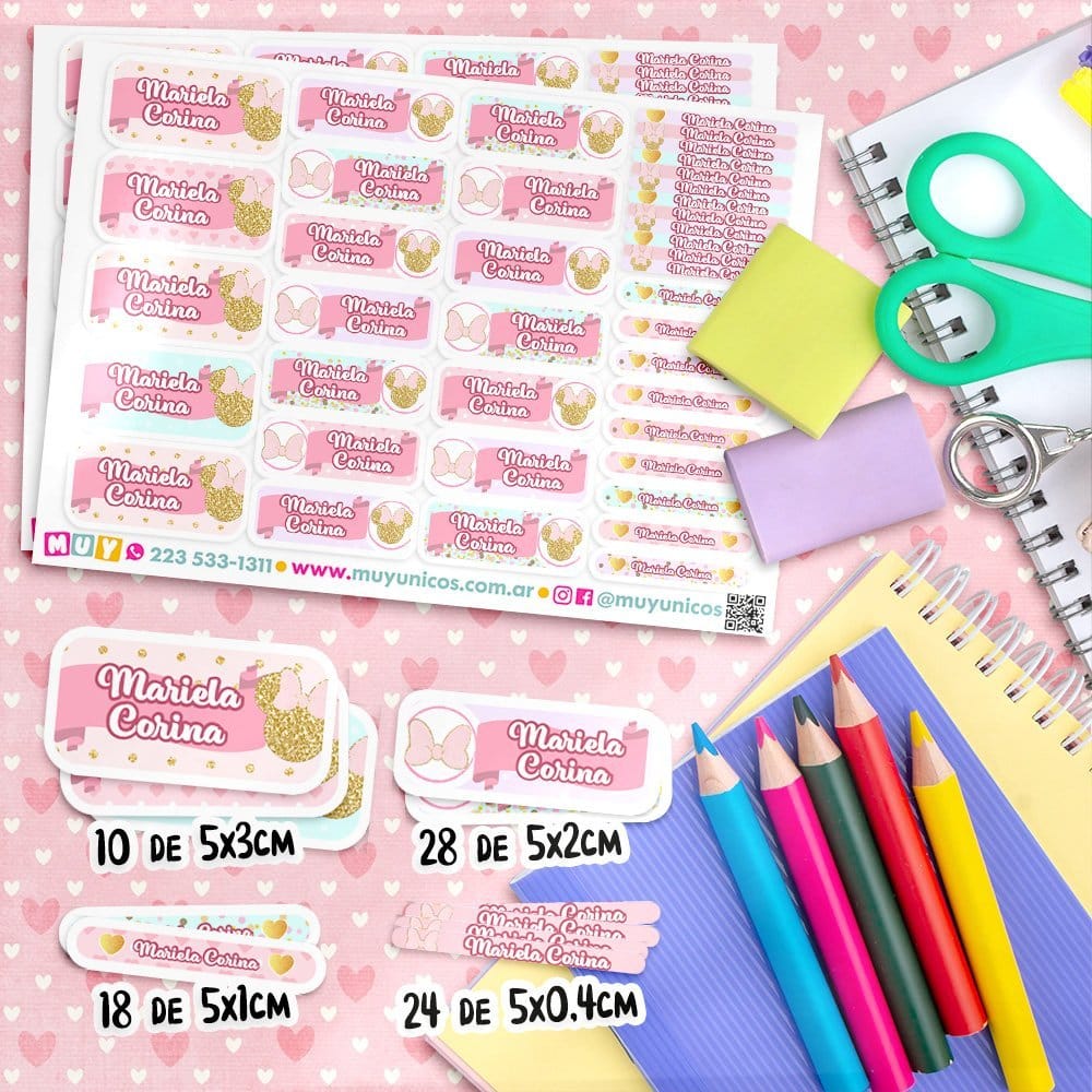 Recibe un kit de etiquetas escolares personalizadas con el nombre que elijas, listas para imprimir. Diseñamos este set a mano para ti y te lo enviamos en un archivo PDF. Este práctico archivo digital en formato PDF de 14 páginas te permite imprimir las etiquetas que necesites, en el tamaño que quieras y cuantas veces desees. Tu compra incluye: Más de mil etiquetas personalizadas de distintos tamaños, diseñadas para adaptarse a todos los útiles y objetos personales. Etiquetas (5×3 cm): Ideales para cuadernos, carpetas, estuches, mochilas y loncheras. Etiquetas (5×2 cm): Perfectas para reglas, marcadores gruesos, sacapuntas, agendas y pegamento…