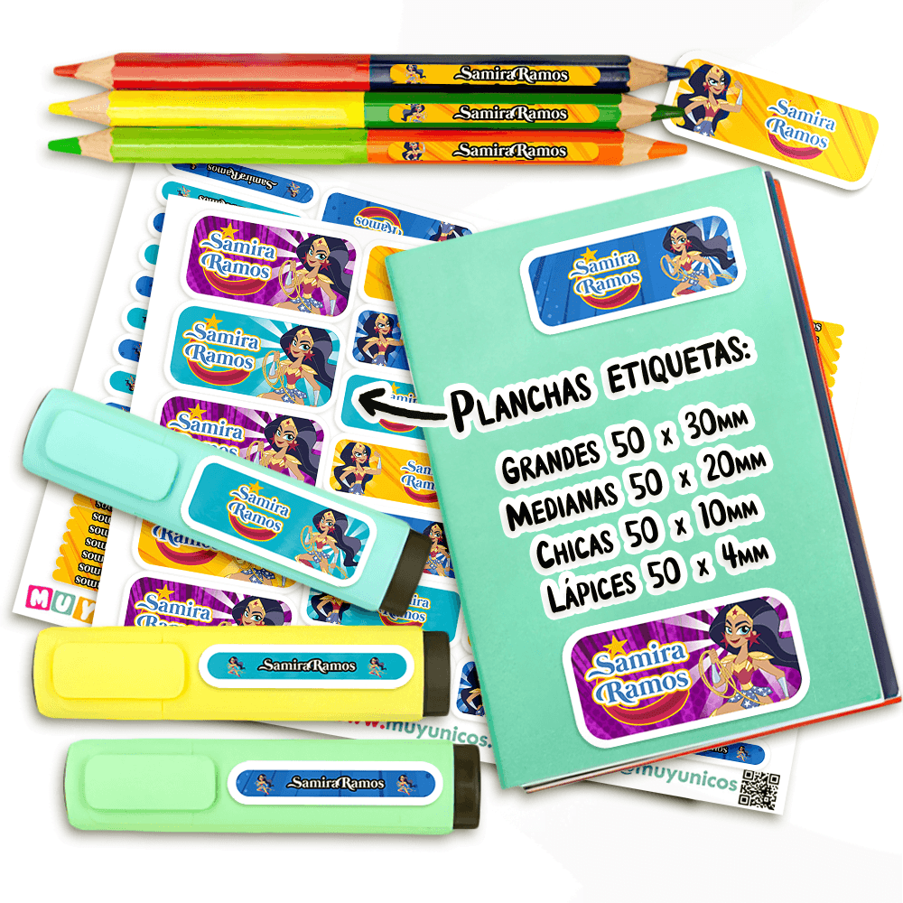 Recibe un kit de etiquetas escolares personalizadas con el nombre que elijas, listas para imprimir. Diseñamos este set a mano para ti y te lo enviamos en un archivo PDF. Este práctico archivo digital en formato PDF de 14 páginas te permite imprimir las etiquetas que necesites, en el tamaño que quieras y cuantas veces desees. Tu compra incluye: Más de mil etiquetas personalizadas de distintos tamaños, diseñadas para adaptarse a todos los útiles y objetos personales. Etiquetas (5×3 cm): Ideales para cuadernos, carpetas, estuches, mochilas y loncheras. Etiquetas (5×2 cm): Perfectas para reglas, marcadores gruesos, sacapuntas, agendas y pegamento…