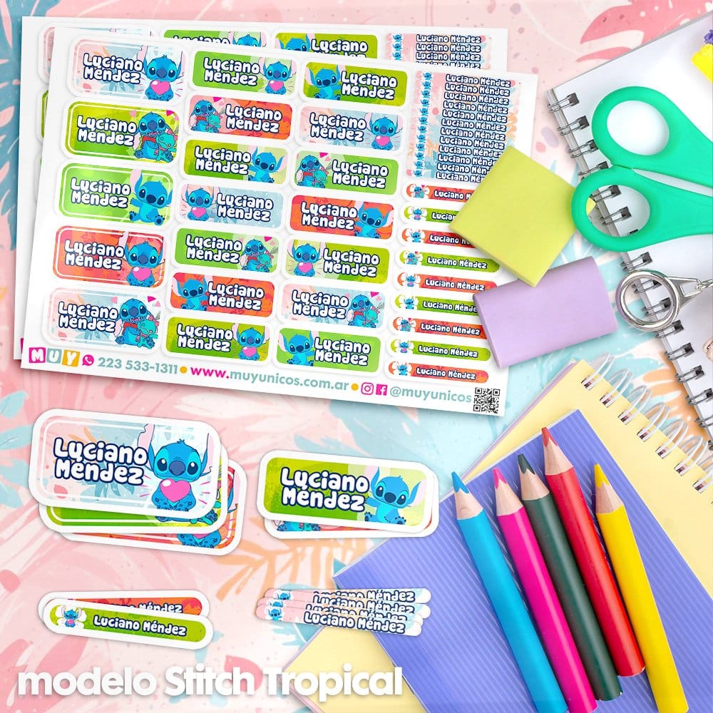 Etiquetas Escolares para Imprimir | Stitch Tropical (Archivo Digital PDF)