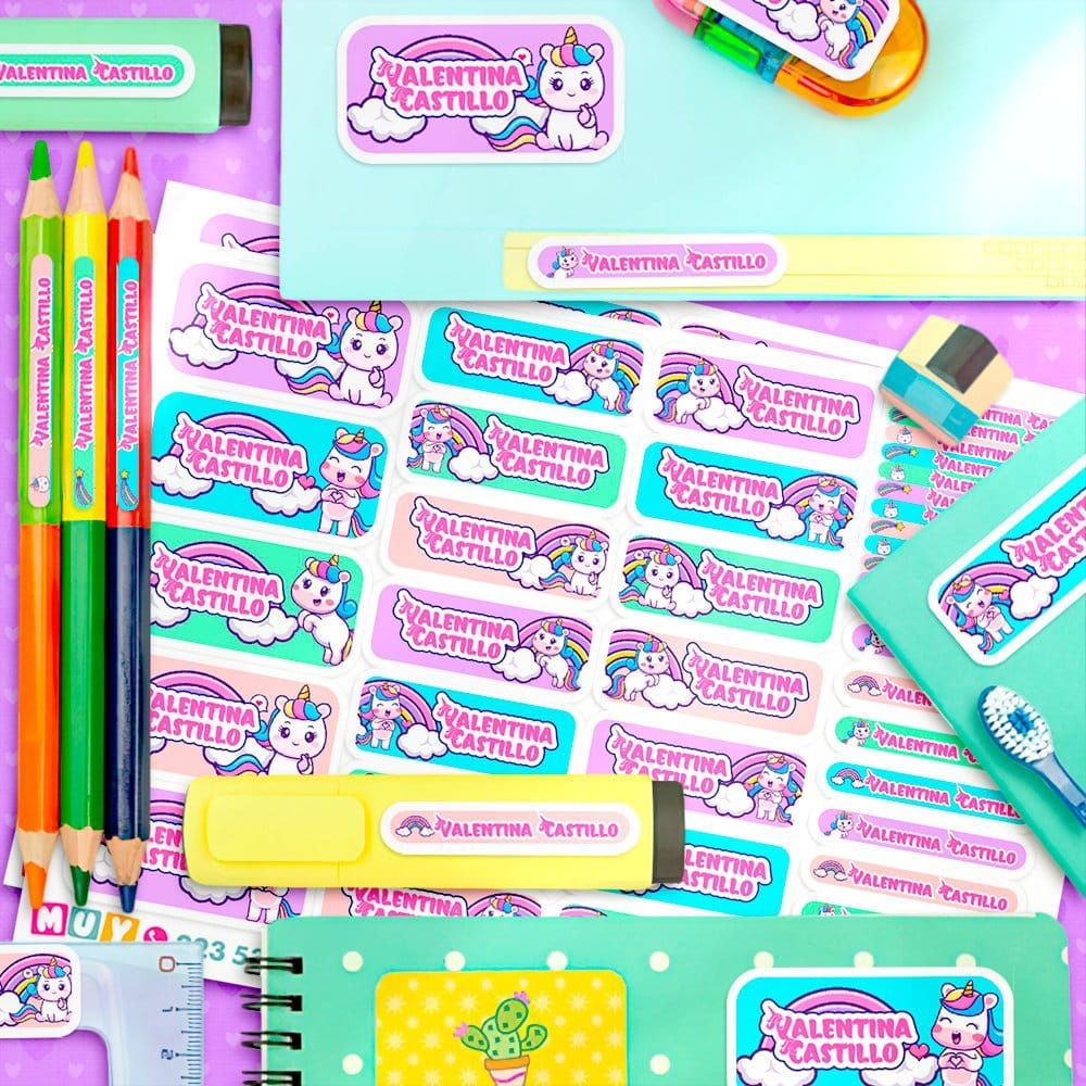 Etiquetas Escolares – Arcoiris Pastel