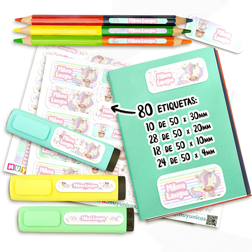 Etiquetas Escolares – Unicornio Pasteles